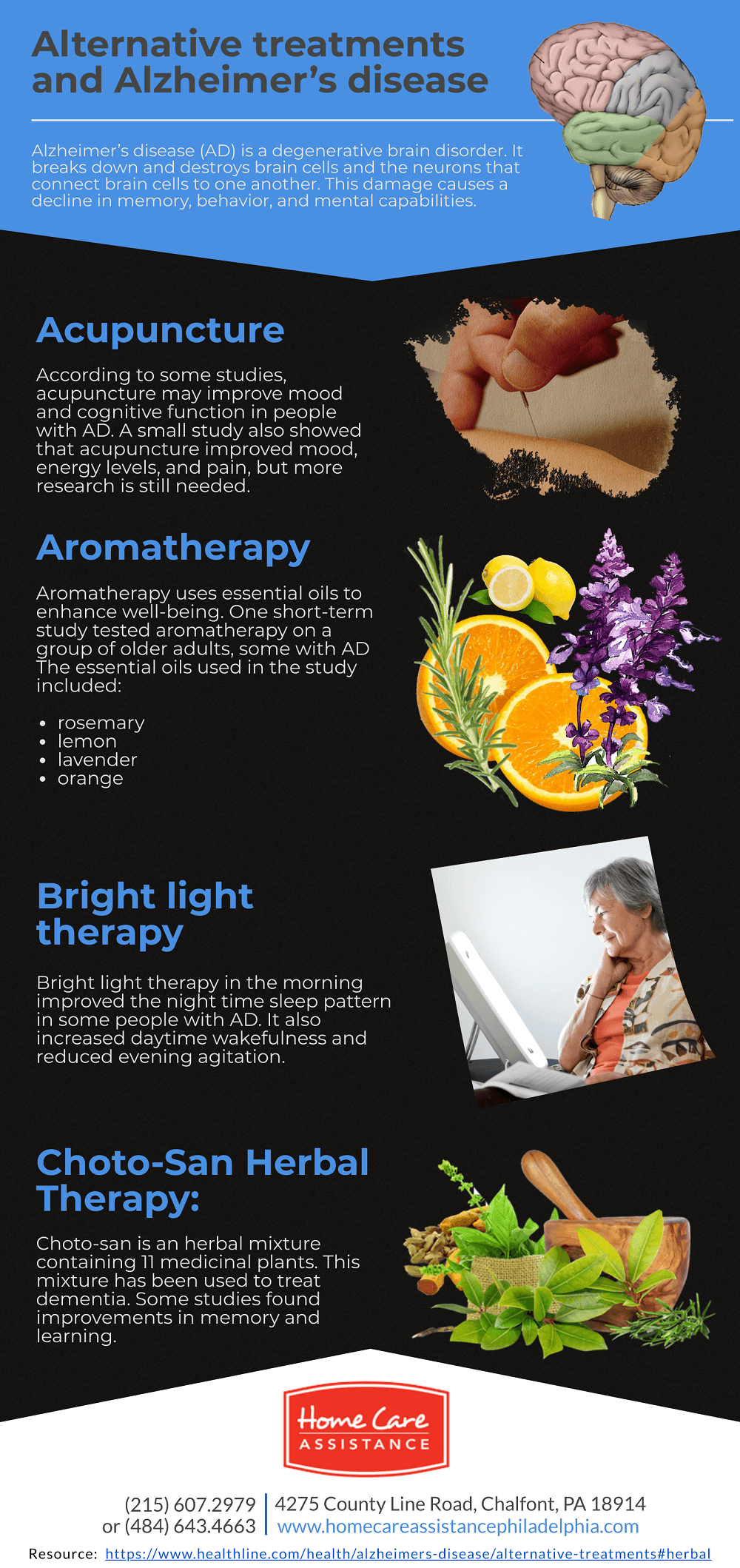There’s no single way to treat Alzheimer’s, and families may want to open up their options and encourage their aging loved ones with the disease to try some alternative methods. Another way to help your loved one is to opt for professional Alzheimer’s care. Philadelphia seniors can receive top-quality care from Home Care Assistance, Call (215) 645-4663 today to learn more.
